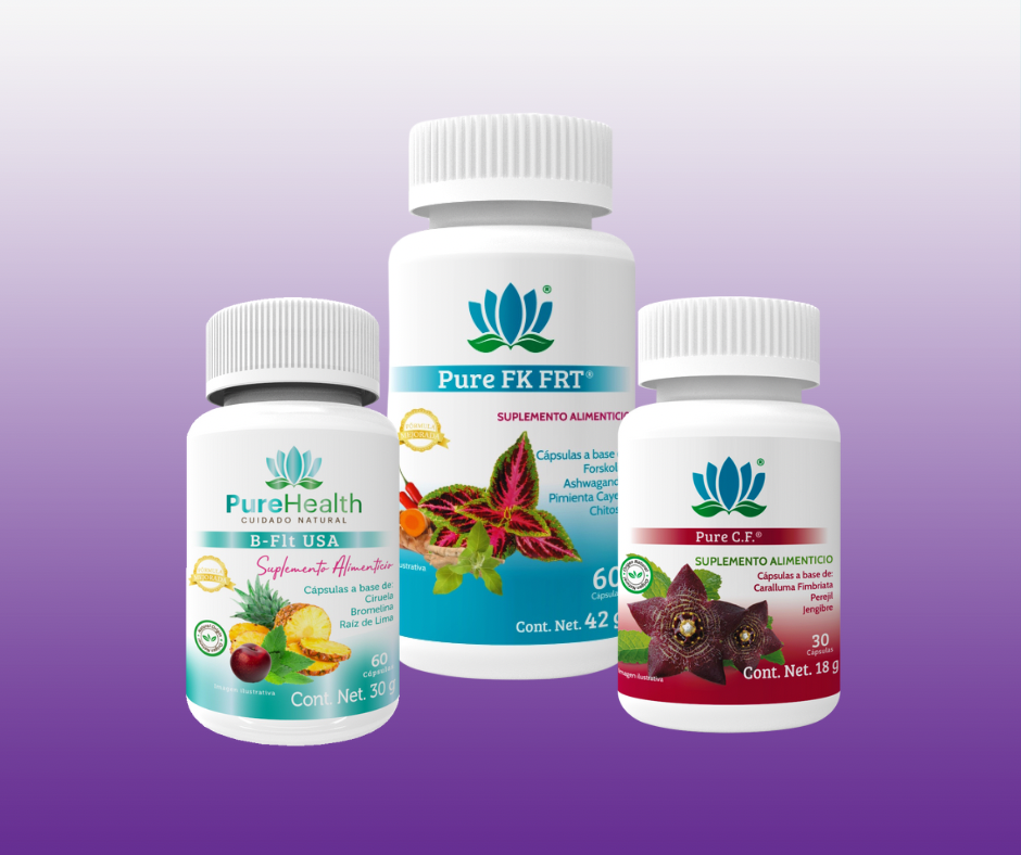 Chitosán, Forskolina, Café Verde, Jengibre, Caralluma, Perejil, Apio, Té Verde, Papaína, Aloe Vera, entre otros.