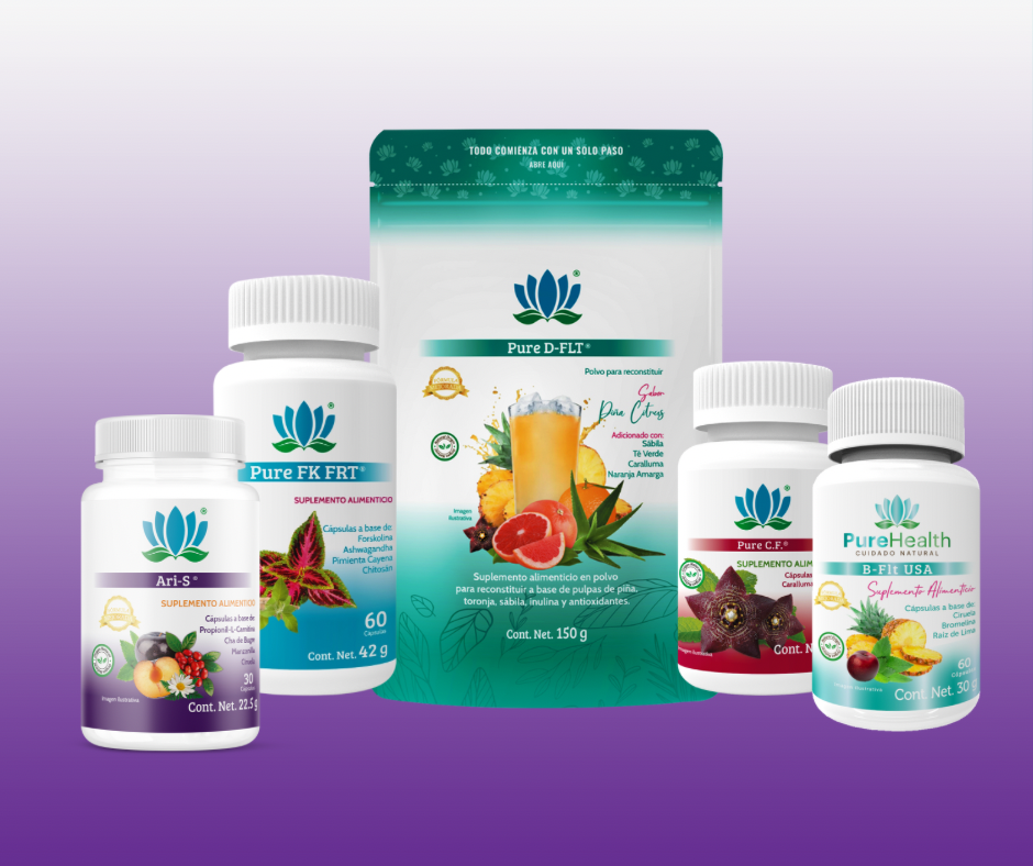 Chitosán, Forskolina, Café Verde, Piña, Jengibre, Caralluma, Perejil, Té Verde, Papaína, Aloe Vera, Frijol Blanco, entre otros.